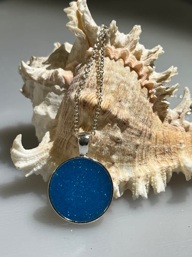 Mini round sea blue resin pendant